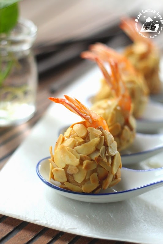 - Deep fry almond prawns in hot oil over low heat till golden brown, drained. Serve hot with sweet chili sauce.