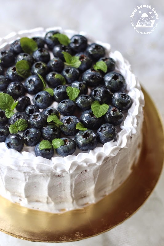 Since it was last minutes decision, so i just can made a simple decoration, and luckily i got these big and sweet fresh blueberries to decorate this cake.